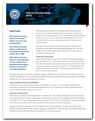 ATF’s National Tracing Center (NTC) is the United States’ only crime gun tracing facility.