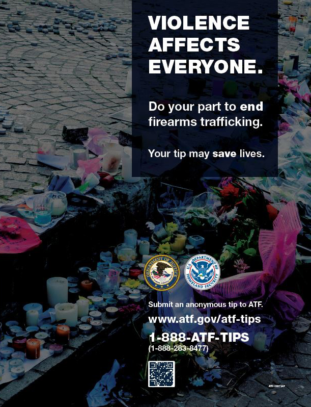 ATF I 3317.8 P English Language Anti-Firearms Trafficking Campaign Poster a violent gun crime memorial with flowers and candles