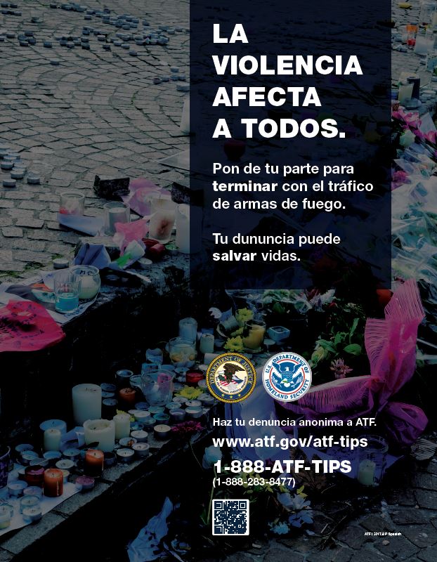 ATF I 3317.8 P Spanish Anti-Firearms Trafficking Campaign Poster a violent gun crime memorial with flowers and candles