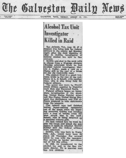 The Galveston Daily News article with headline Alcohol Tax Unit Investigator Killed in Raid