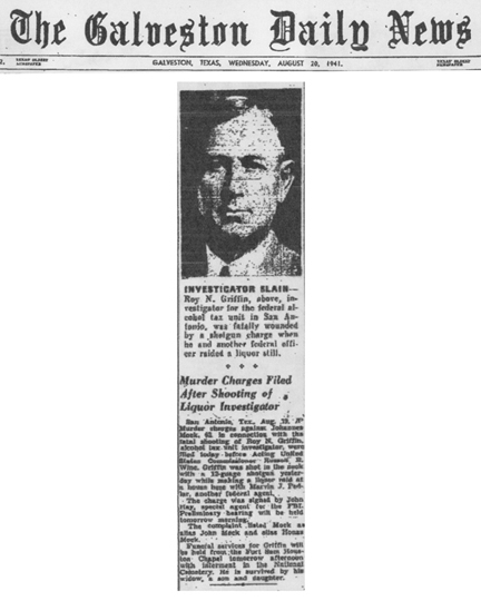 The Galveston Daily News article with headline, Murder Charges Filed After Shooting of Liquor Investigator