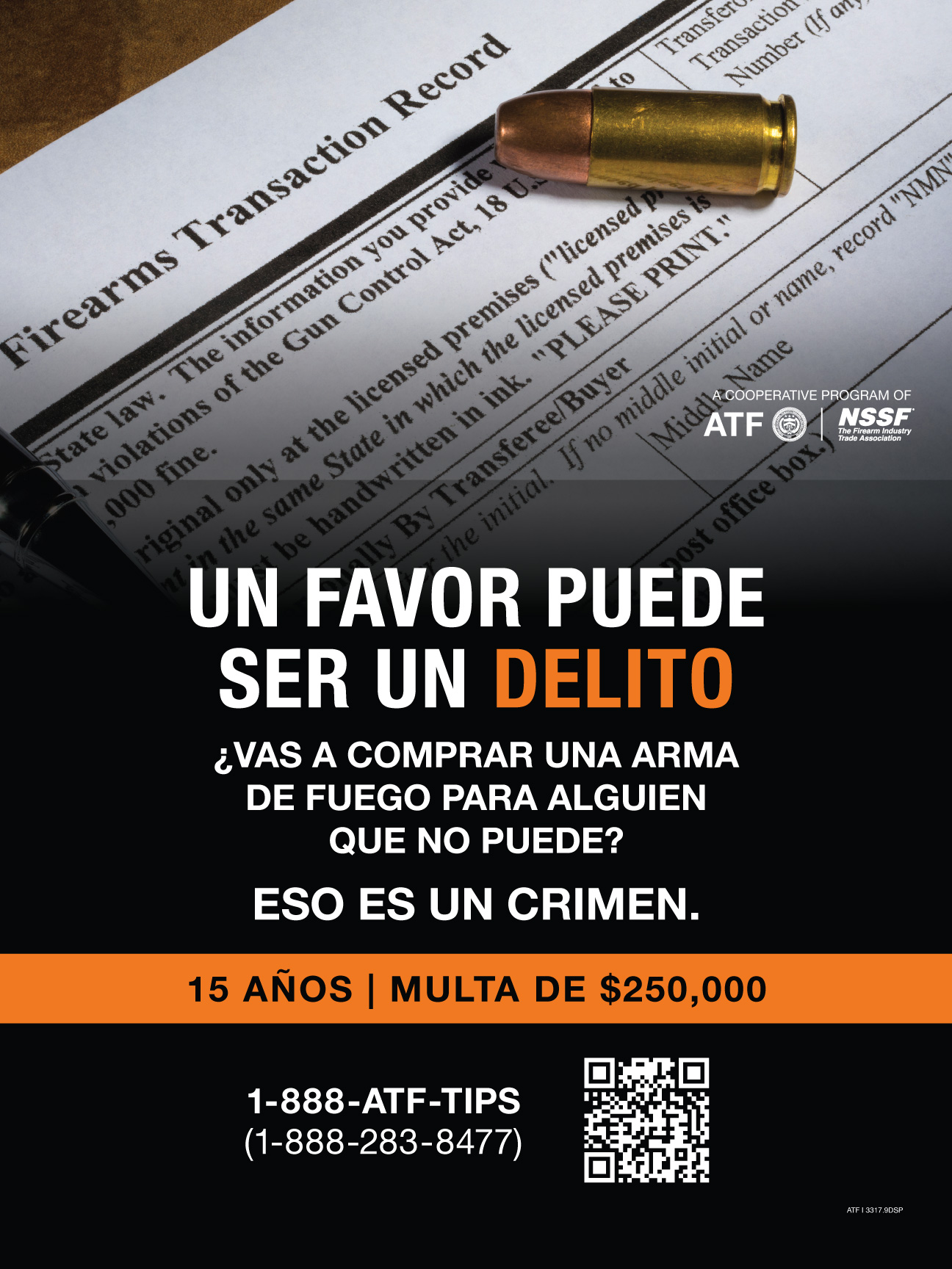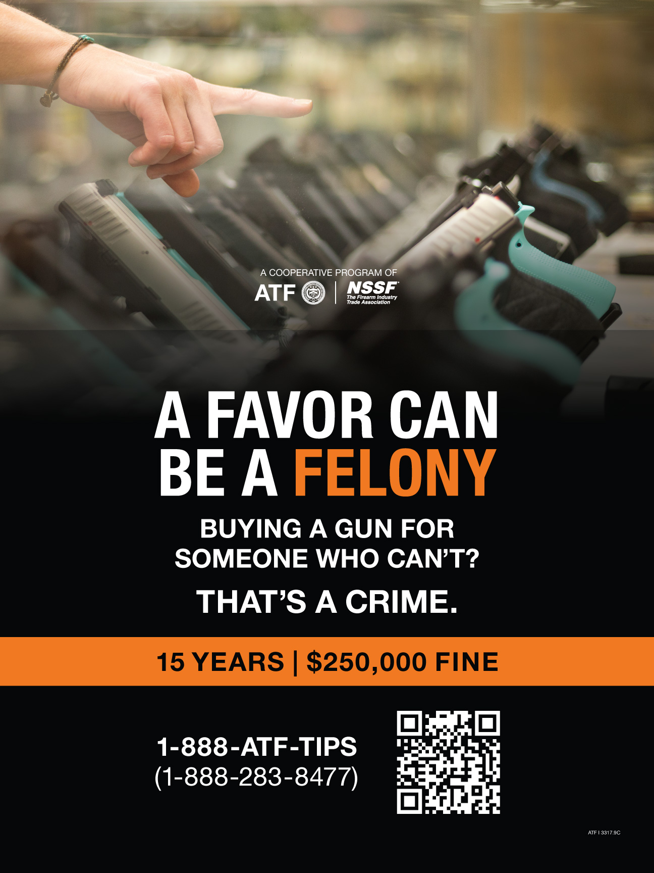 Spread the word on straw purchasing (buying firearms for those who are legally prevented from owning one). Order copies of the Don't Lie for the Other Guy Campaign posters and notecards from the ATF Distribution Center by using the online form today.
