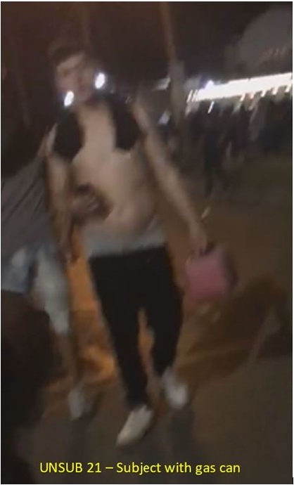 ATF is seeking to identify the above male with a gas can (ID# UNSUB21) in relation various arsons in Kenosha, Wisconsin Aug. 24.