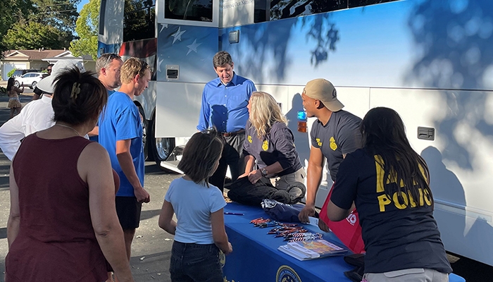 ATF Director Steven Dettelbach attended National Night Out events in Pleasanton, California, during his visit to the ATF San Francisco Field Division. He joined Pleasanton Police Department Chief David Swing in celebrating the events.