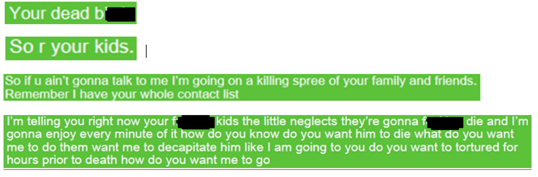 In August 2021, Pierce pleaded guilty to assaulting his then-wife; he was placed on probation and ordered to have no contact with her. They divorced. While the no contact order was in place, Pierce began repeatedly calling, texting, messaging, FaceTiming, and emailing his ex-wife, threatening to harm and kill her, her children, and her friends and family. Pierce also threatened to kill himself and sent images of firearms. On April 23, 2022, he sent an email that included the line “OK I got my f---ing body armor together I got my guns ready.” On April 30, he sent texts that said, “Your dead b----” and “so r your kids.”
