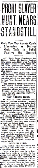 On June 9, 1930, Prohibition Agents Albert Brown and Robert Davis were attempting to arrest Rodney Selby for violation of the National Prohibition Act. Selby, who operated the Indian Springs filling station, had just sold the agents four shots of liquor. However, before they could handcuff him, Selby grabbed a .25 caliber handgun from behind a counter and started shooting wildly. In the ensuing gunfight, Agent Brown was seriously wounded, while Agent Davis suffered superficial wounds. Agent Davis placed Agent Brown in the Government car and rushed him to the hospital, but Agent Brown died enroute. Selby escaped, but was arrested several days later. He pleaded guilty to murder on June 16, 1930, only 7 days later and was sentenced to 10 years to life imprisonment.