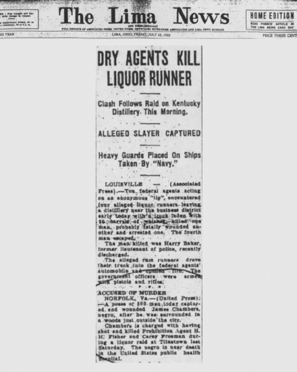 Prohibition Agents Cary Dorsey Freeman and Howard Fisher were executing a search warrant at the home of James Chambers in Norfolk (Titustown), VA. While the officers were searching the house, Chambers retrieved a hidden gun and killed both agents. Chambers fled, but was later hunted down and killed by a Federal posse.