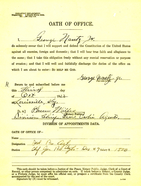Agent Nantz joined the Prohibition Unit on October 3, 1922, with an annual salary of $1,800.