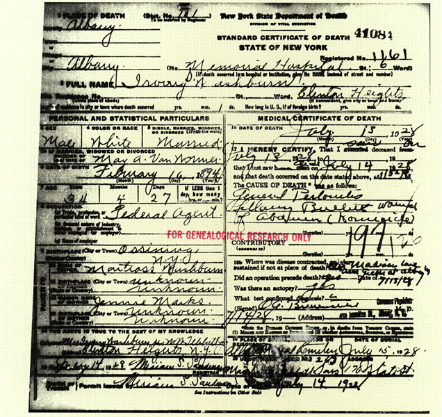 During the early morning hours, Prohibition Agents Irving Washburn and Wilfred Grisson were working in the Madison Avenue section of Albany, NY. The agents stopped a car loaded with illicit liquor and attempted to arrest the driver, Joseph Schepist (aka Joseph Skeps), and several other male occupants. Schepist and the others resisted. During a scuffle, Agent Washburn was fatally shot. Before he died, Agent Washburn identified Barbero "Jack" Zulo as the person who shot him. Arrest warrants were also issued for Joseph Schepist, Joseph Zulo and Angelo "Charlie" Gutta.