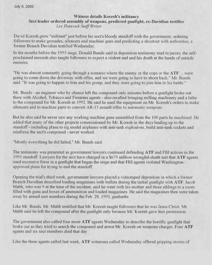 In May, 1992, ATF commenced an extensive investigation of David Koresh (aka: David Wayne Howell) and the Branch Davidians, a cult group residing on a large and rural property near Waco, Texas. ATF's investigation centered on Koresh and the Davidians being involved in the illegal manufacture and possession of machineguns and the illegal manufacture and possession of destructive devices, including bombs and grenades. In fact, ATF's investigation showed that the group had acquired the following: