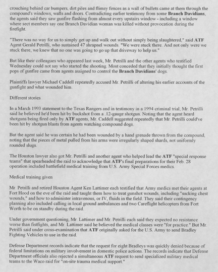 A subsequent investigation by the Departments of Treasury and Justice regarding the actions of law enforcement agents during the siege determined that some tactics and decisions were poorly executed; and in fact, certain actions by ATF were criticized. However, the September 1993 U.S. Department of Treasury Administrative Review concluded: