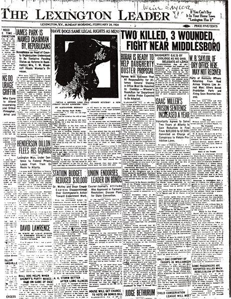 Prohibition Agent Willie Saylor was transporting several prisoners including Lloyd Littrell, to jail for possession and transportation of illicit liquor. As they drove near Pineville, KY, Bill and John Littrell, father and brother of Lloyd, had blocked the road with their automobile. They demanded that Agent Saylor release Lloyd. Agent Saylor refused and a gunfight erupted. Agent Saylor and Bill Littrell were killed, while Lloyd and John Littrell were wounded.
